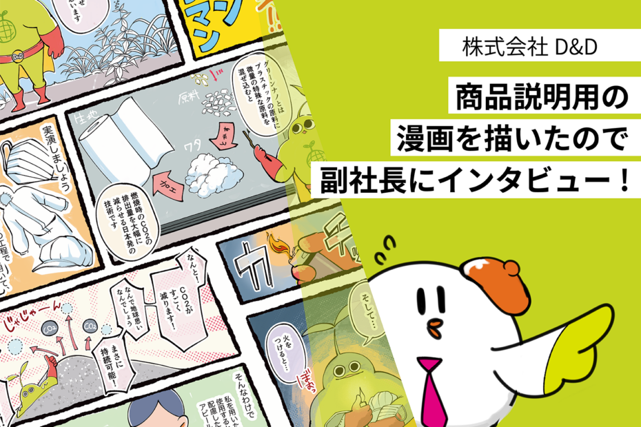 株式会社D&D様のサービスのひとつ、環境配慮型プラスチック素材「グリーンナノ」をも… 続きを読む »【株式会社D&Dのマンガを描きました】ので取締役にインタビュー!